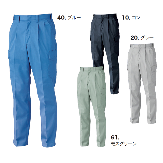この作業服シリーズのカラーはブルー・コン・グレー・モスグリーンの4色展開です。
