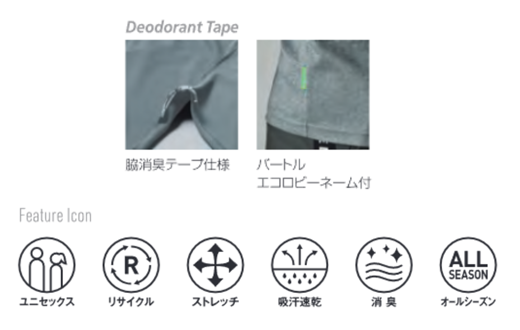 ペットボトルリサイクルのパイオニア、REPREVEを採用したバートル長袖Tシャツ。エコロジカルTシャツは、1枚につき500mlペットボトルを約3本使用しています。紫外線から肌を守るUVカット機能(90%以上)、ドライな着用感が持続する吸汗速乾加工を施しました。