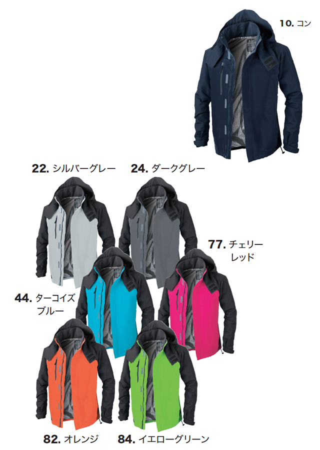 カラーは、鮮やかなターコイズブルー・チェリーレッドと定番のダークグレー・コンの4色です。SS~5Lまでと幅広いサイズ展開で、男女兼用でご利用いただけるブルゾンです。