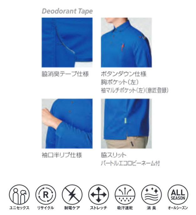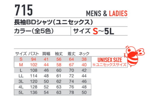 715 BURTLE(バートル)長袖ボタンダウンポロシャツ男女兼用