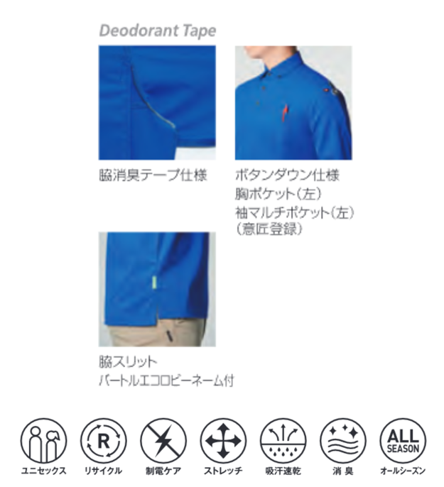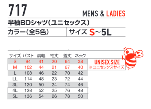 717 BURTLE(バートル)半袖ボタンダウンポロシャツ男女兼用