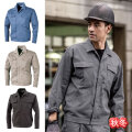 綿100%ワークの定番、丈夫なウエポン生地を使用。ブルゾン前面、フラップ、袖口は糸付けボタンを隠す仕様で、鉄工所や溶接など火熱を扱う現場で生じる火花やスパッタがあたりにくく、他のモノに傷がつかないような工夫がされています。万が一の際にもすぐ脱げるよう、そして修理にも対応できるよう糸付けボタンを使用しています。