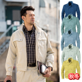 この作業服シリーズのカラーはコン、アイボリー、ブルーグレー、モスグリーン、キャメルの6色展開。アイテムを組み合わせてコーディネートをお楽しみください。