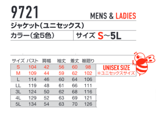 9721 BURTLE(バートル) 男女兼用ジャケット