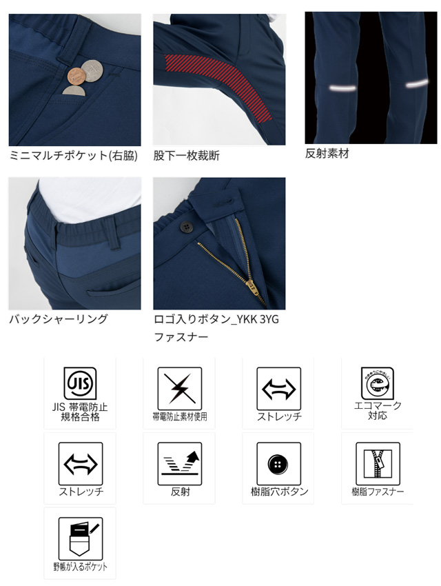 MB25103 CO-COS(コーコス) エコ・裏綿ストレッチスラックス