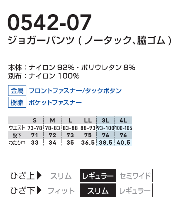 SOWA0542-07 ジョガーパンツ( ノータック、脇ゴム)