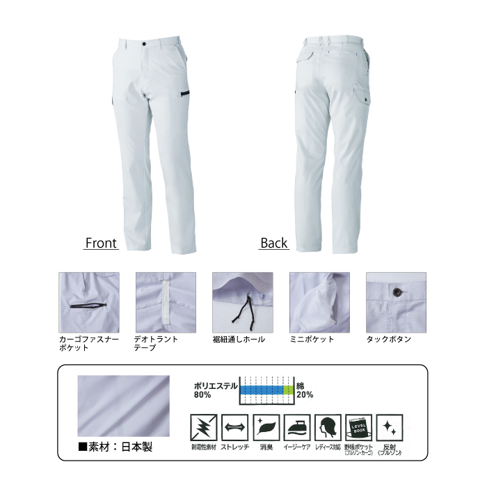 軽くて伸びやすい、消臭効果のある生地を使用しています。