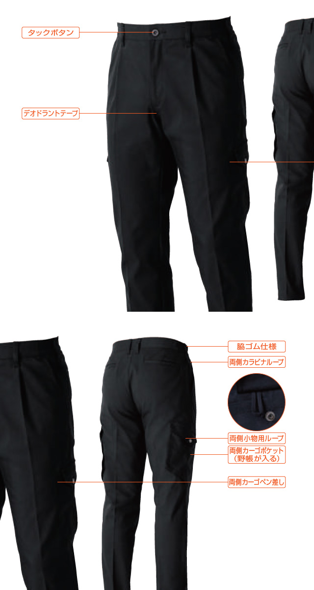 フルハーネス着用時に使いやすいポケット配置の制電エコワークウェア