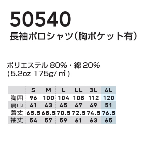 SOWA50540 長袖ポロシャツ(胸ポケット有)