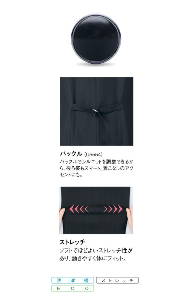 UNILADY「無敵のヒロインスーツ」シリーズです。仕事を頑張るONタイムも、通勤や休憩中のOFFタイムも、これさえあれば!なジレです。洗濯機で洗えます。