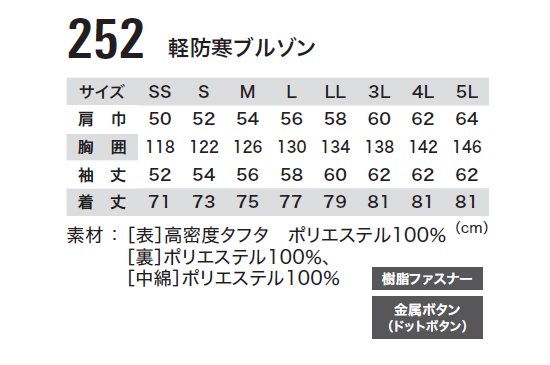 252 XEBEC(ジーベック) 軽防寒ブルゾン