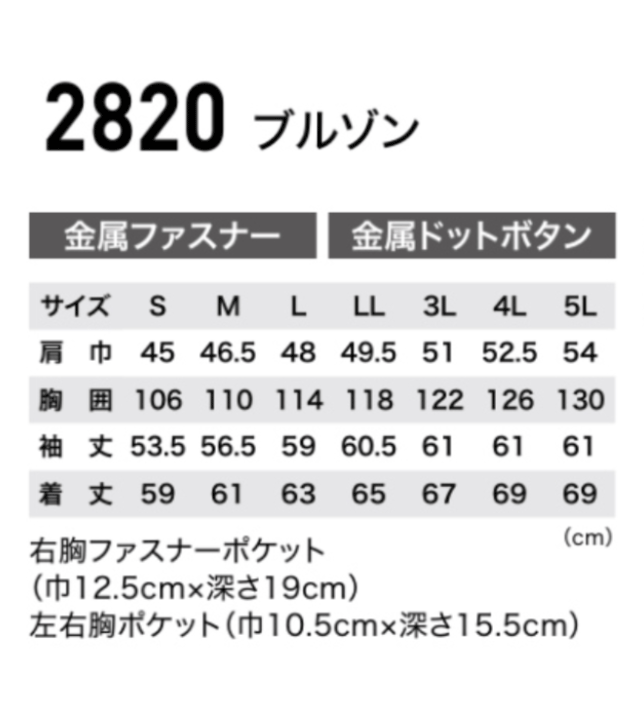 2820 XEBEC(ジーベック) 長袖ブルゾン
