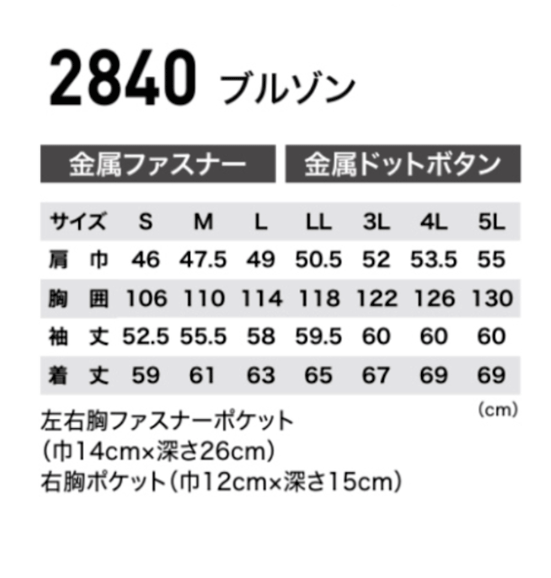 2840 XEBEC(ジーベック) 長袖ブルゾン