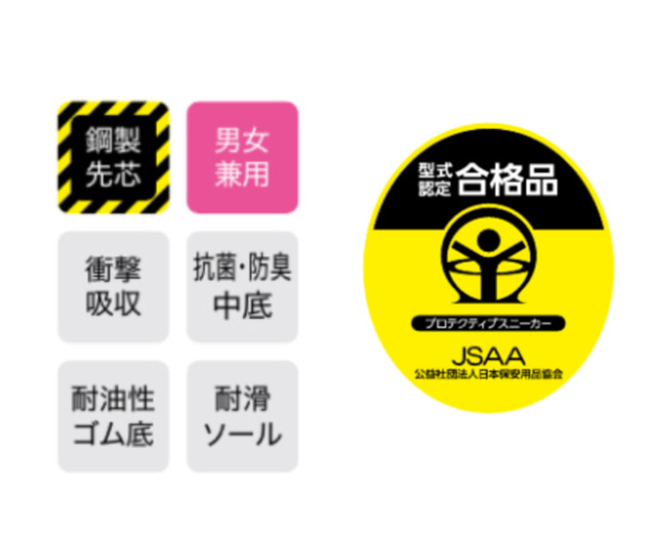 高クッション&耐滑モデルのジーベックプロスニーカー。耐滑性に優れたゴム配合とソール意匠で作業中の転倒事故を軽減する耐滑ソールを搭載しました。