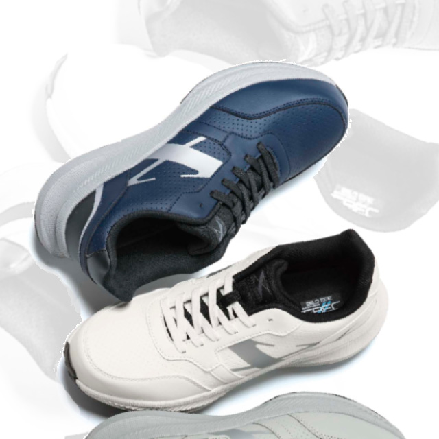 軽量設計で、クッション性に優れたEVAミッドソールが足への負担を軽減するジーベックセーフティシューズ。アッパーは合成皮革素材を使用し、水や油の浸入を防ぎます。