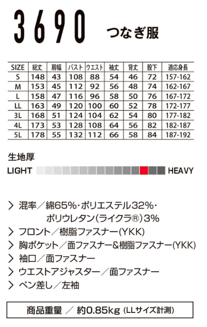 3690 AUTO-BI 長袖ツナギ服